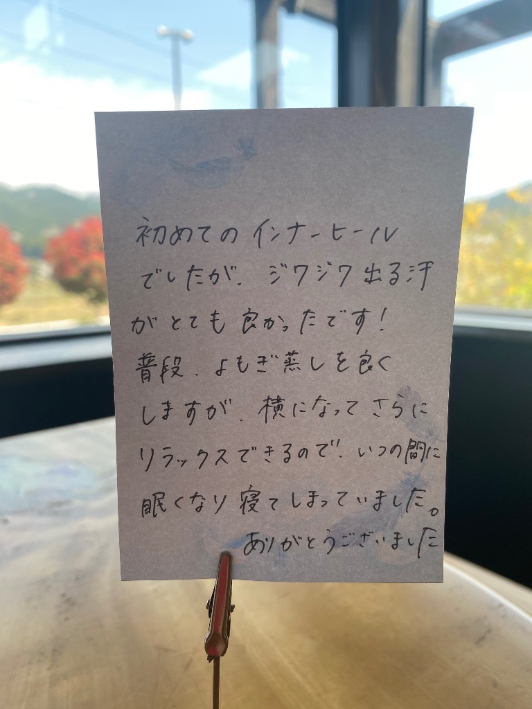 本年インナーヒール岩盤浴の営業は、本日30日をもって、年内最後の亀山市内のお客様をお迎えしてお仕事納めとなりました✨