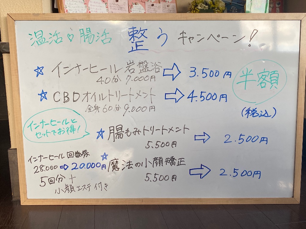 ☆インナーヒール岩盤浴+CBDオイルトリートメント 通常16,500円を半額→8,250円でご体験いただけます!